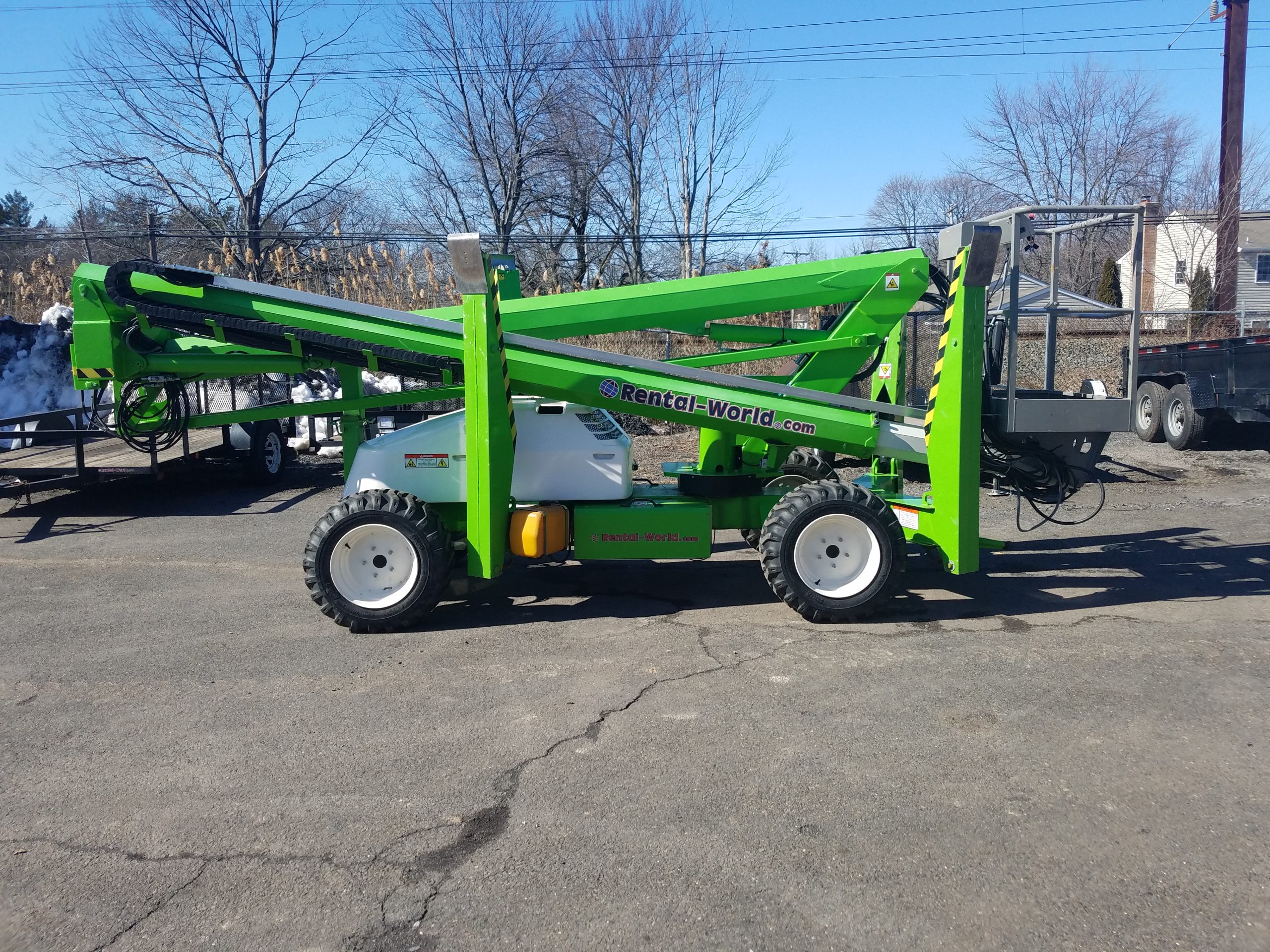 Weight 6085 lbs. Bucket Capacity 440 lbs. Max. working ht 56′ Max. platform ht 48′