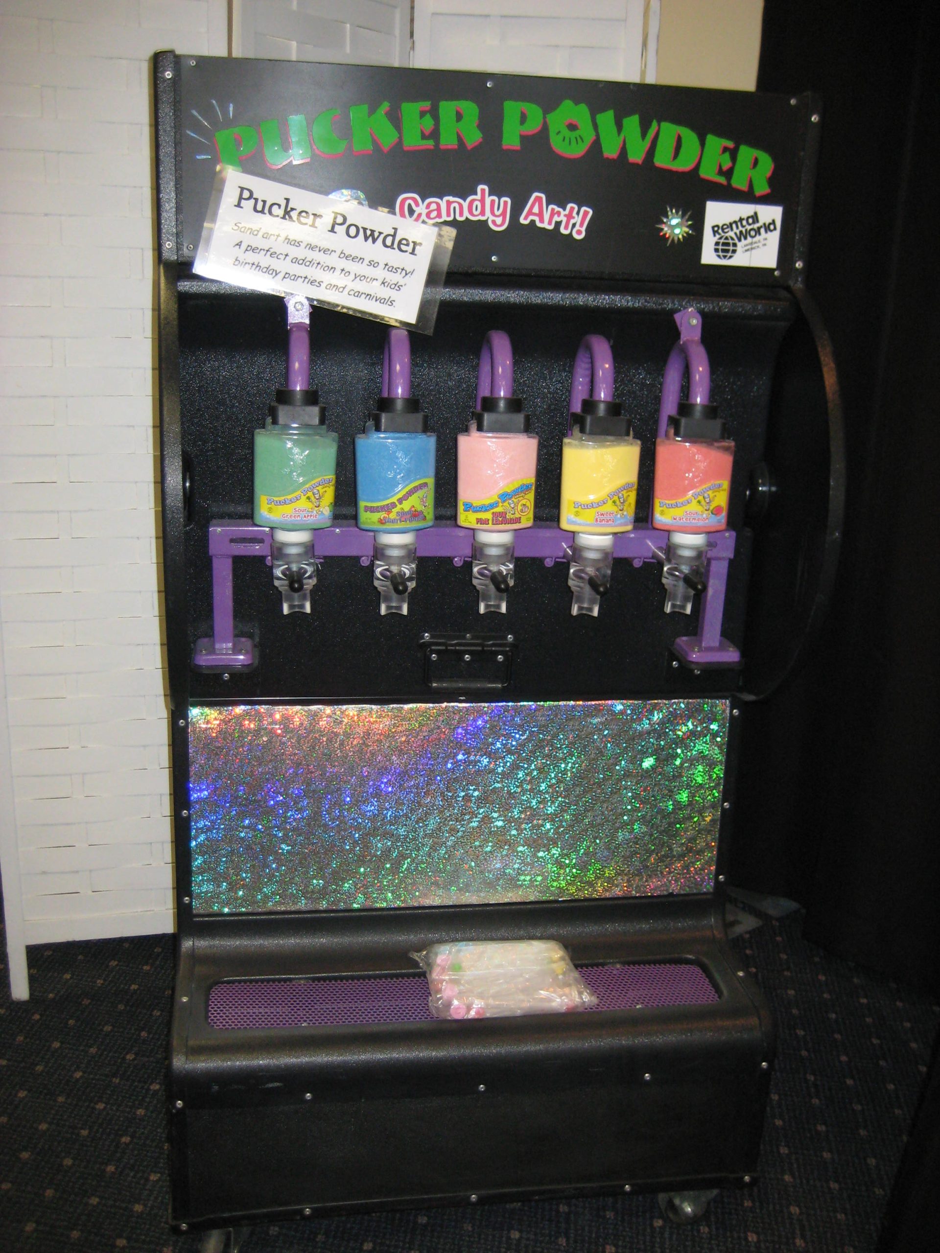 Pucker Powder candy art would be the ultimate one stop shop for kids! Candy art similar to sand art but Edible!!! Guests will delight in making and eating their own delicious candy creation. Holds 5 different candy flavors.