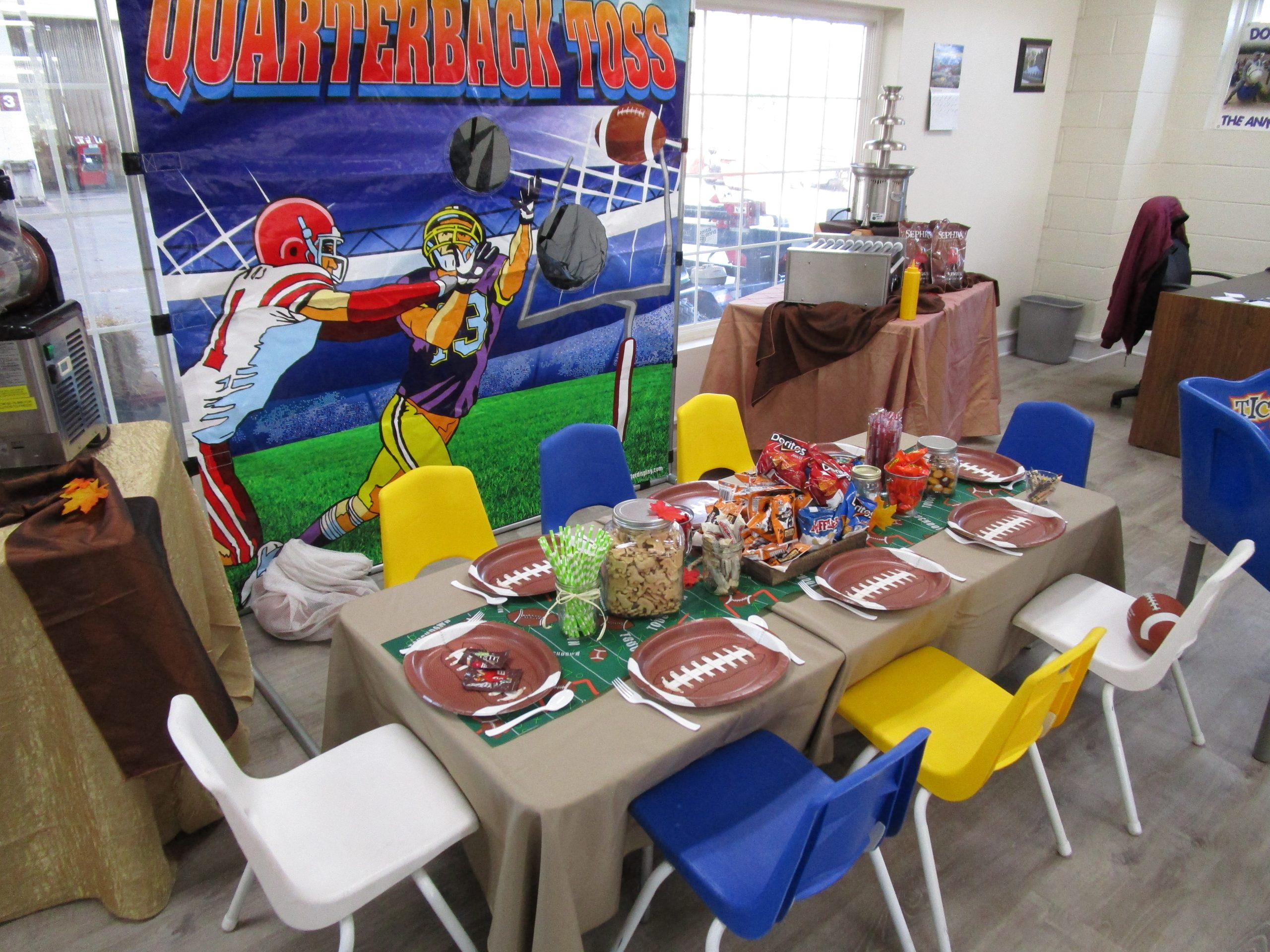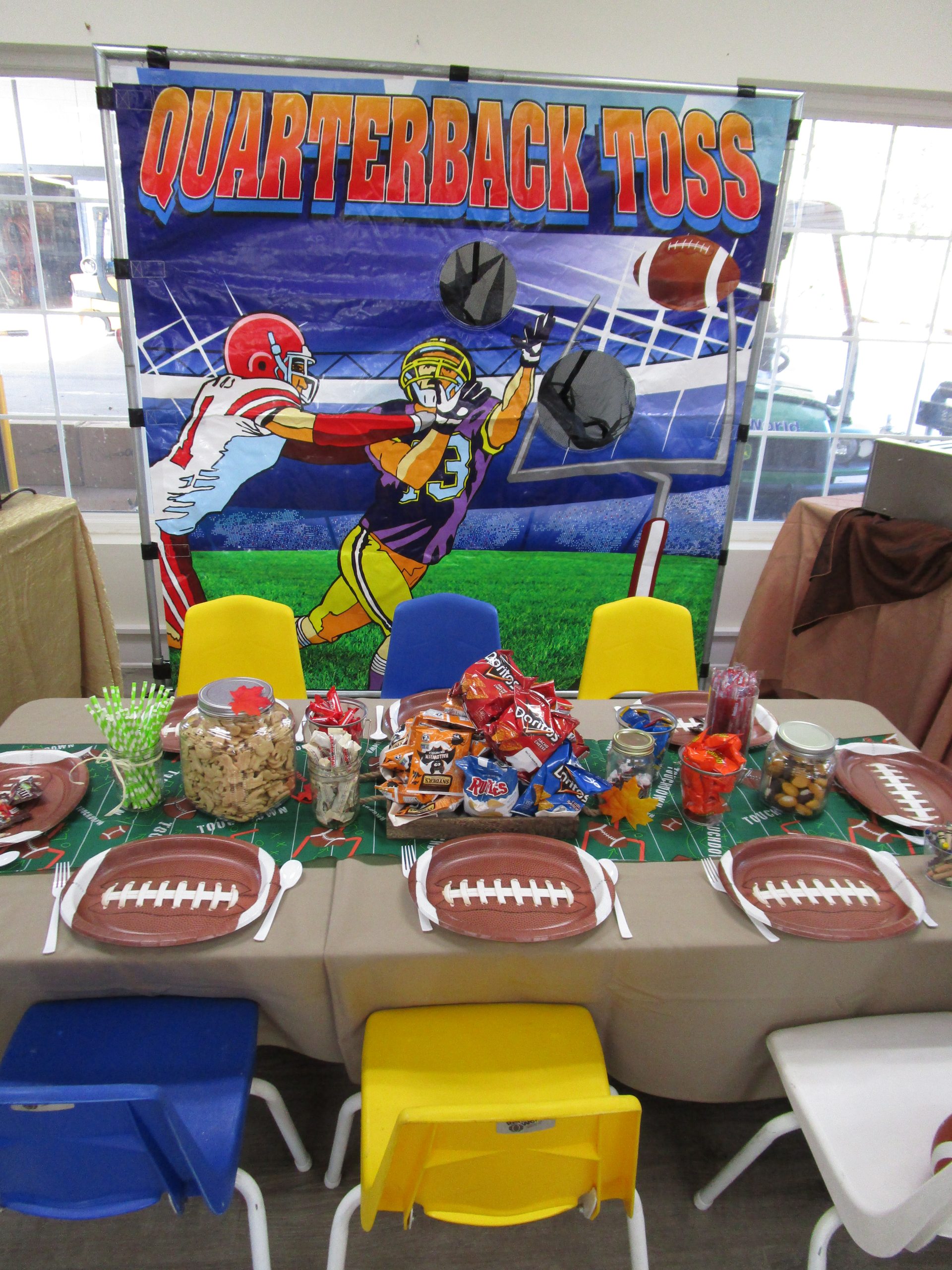 The Quarterback Toss frame fame is a winner at any sporting event, fund raiser, or carnival. It’s a very simple game, but irresistible! No football player or football player want to be can walk by this game without giving it a shot. Quarterback Toss can be set up in less than five minutes and can be used indoors or out.